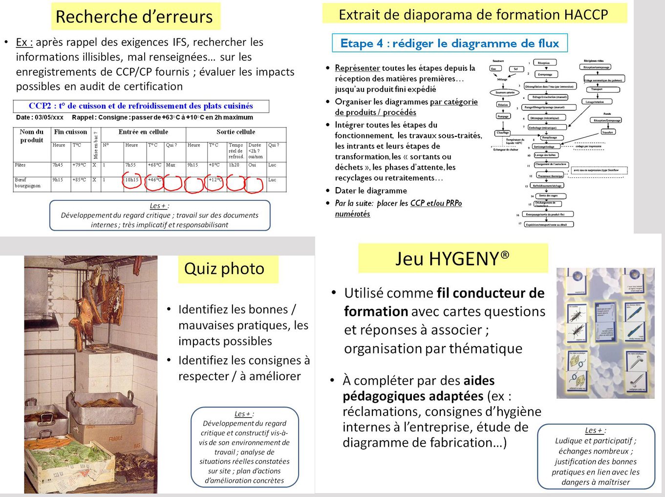 - Des moyens ludiques : jeu pédagogique Hygény, mallette « contaminations croisées »