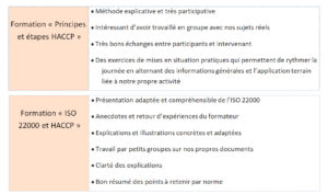 Pour les formations aux « bonnes pratiques d’hygiène et de fabrication », les points forts perçus par les stagiaires sont :
