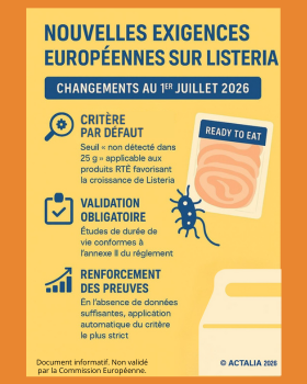 Dès le 1er juillet 2026, la réglementation européenne évolue. Elle vise à renforcer la sécurité des aliments prêts à consommer (RTE) face à Listeria monocytogenes.